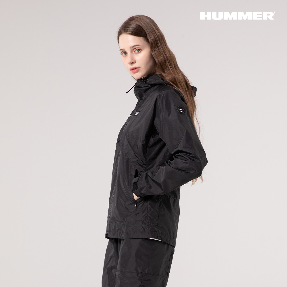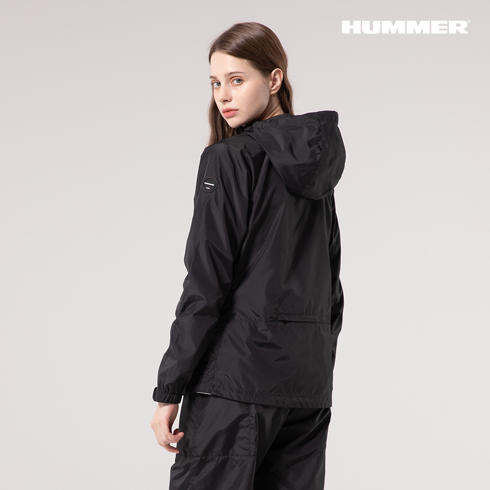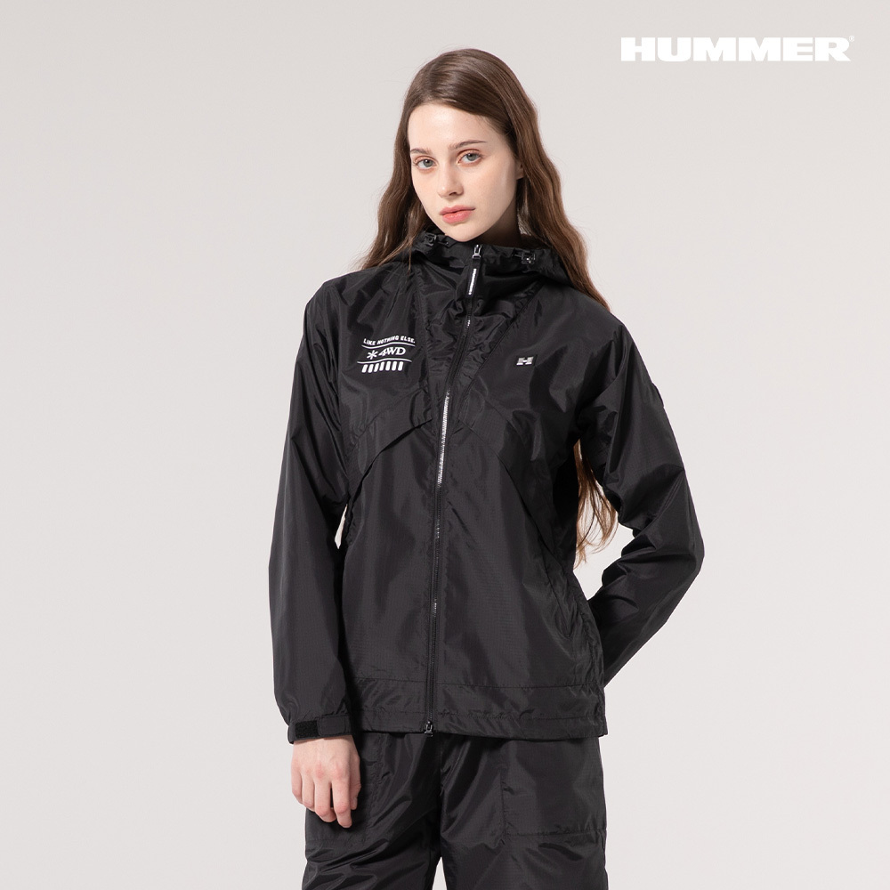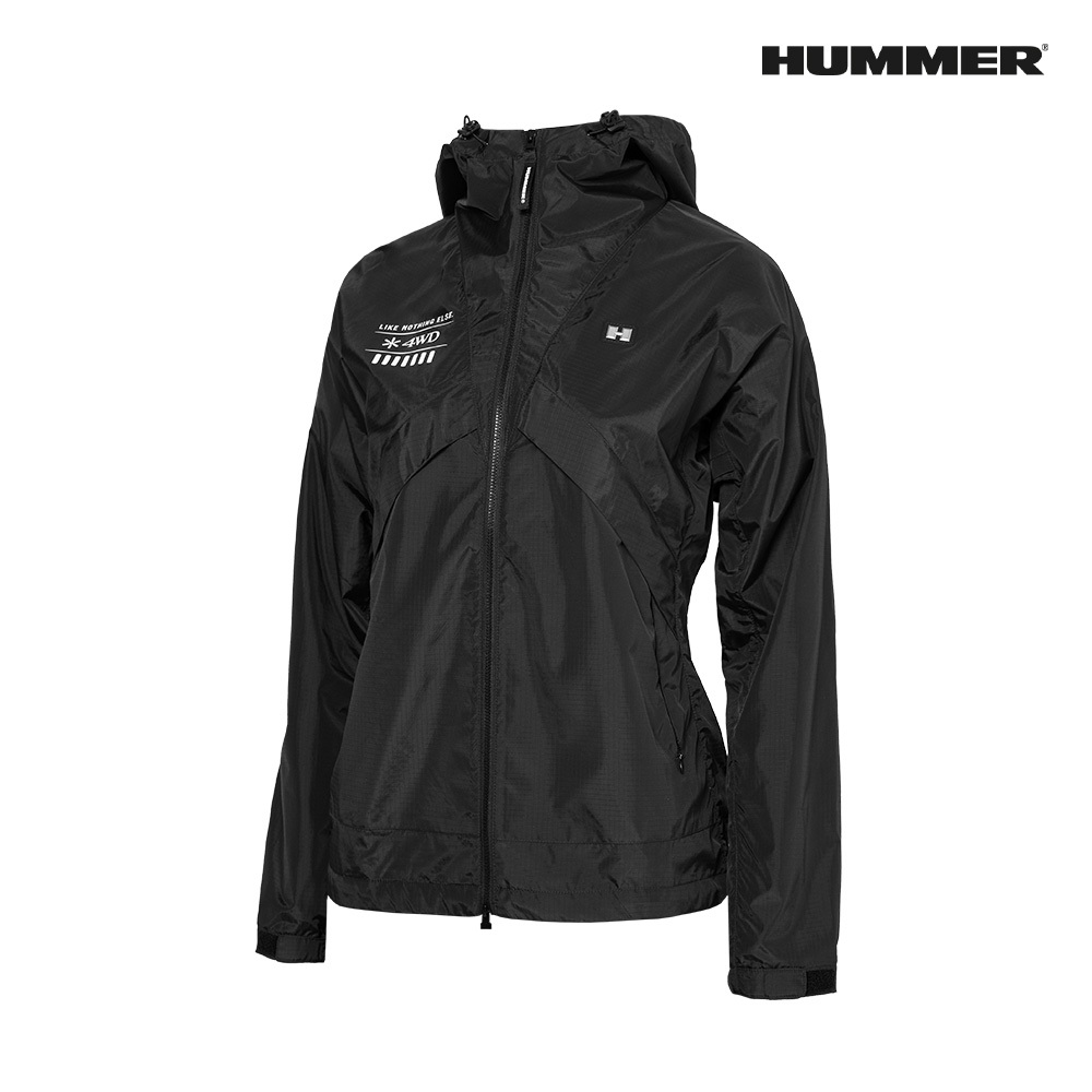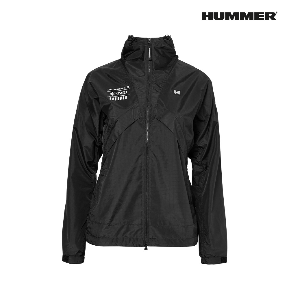 25SS 험머 여성 H3 그래픽 로고 패커블 경량 바람막이 후드 자켓 블랙