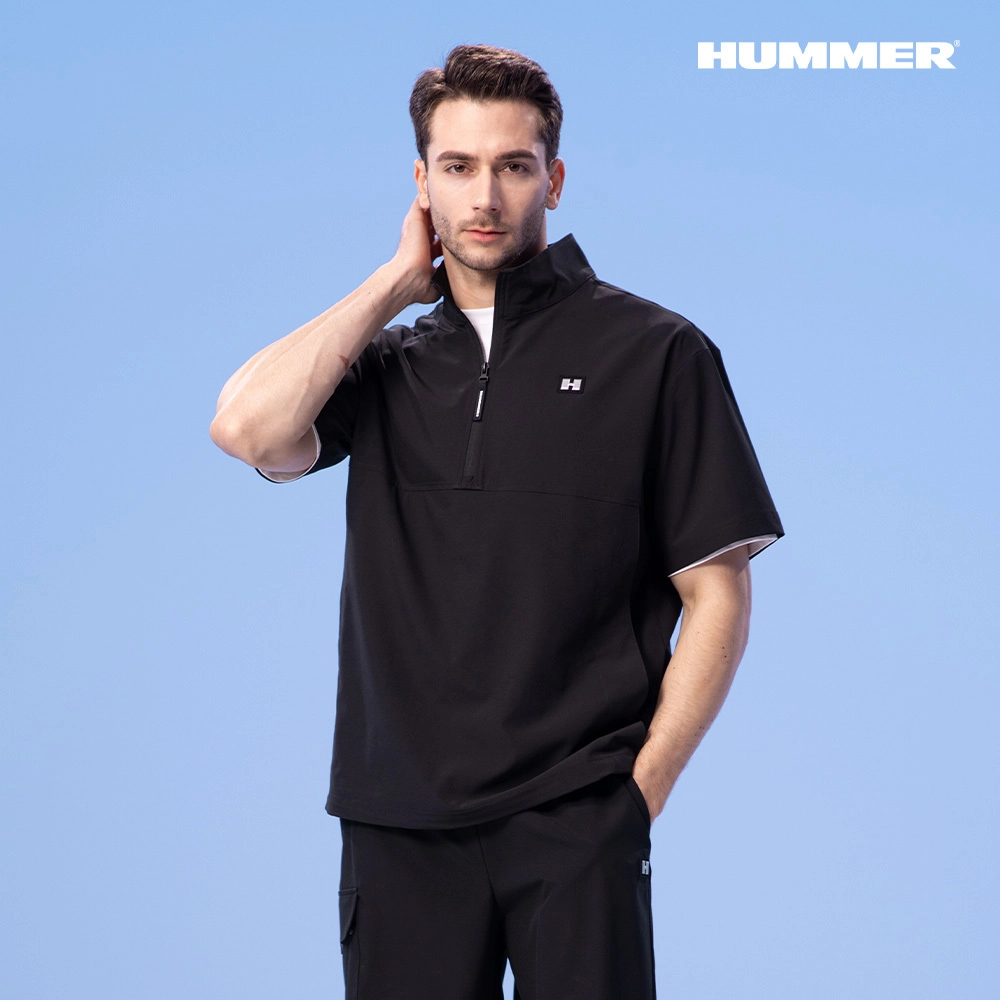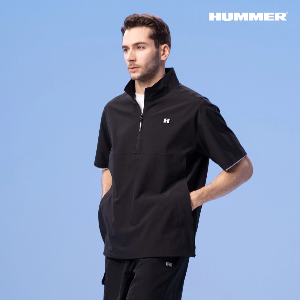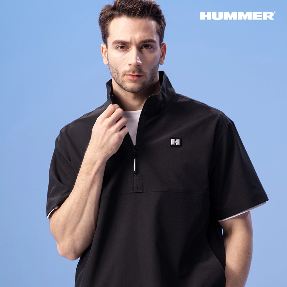 25SS 험머 남성 H4 시그니처 로고 하프집업 반팔 아노락 자켓 블랙